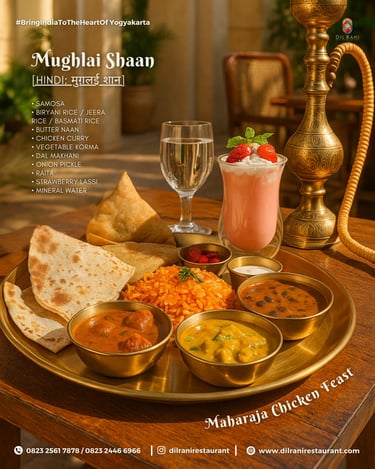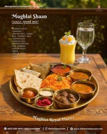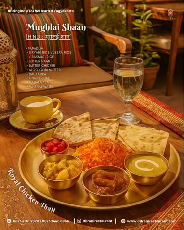 Dil Rani Restaurant yang dikenal sebagai restoran india di Yogyakarta berusaha menghadirkan tradisi tersebut ke meja makan anda. Di Dil Rani Restaurant, kami menghadirkan pengalaman autentik Thali India dengan penyajian elegan dan cita rasa sesungguhnya. Nikmati dua pilihan paket istimewa:
